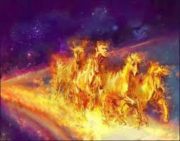 Let me see on the hills, blazing chariots with flames,